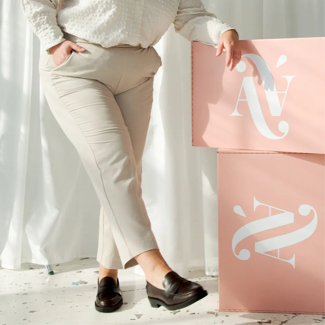JETZT EIN STYLING BESTELLEN!Die Apfelform, mit ihrem breiteren Bauch und attraktiven Beinen, sieht großartig aus in A-Linien-Kleidern und Hosen mit hohem Bund, die eine schmeichelhafte Optik schaffen und die Beine betonen. Gut sitzende Oberteile und hochtaillierte Designs helfen, den Taillenbereich zu formen und schaffen ein elegantes und stilvolles Aussehen.
