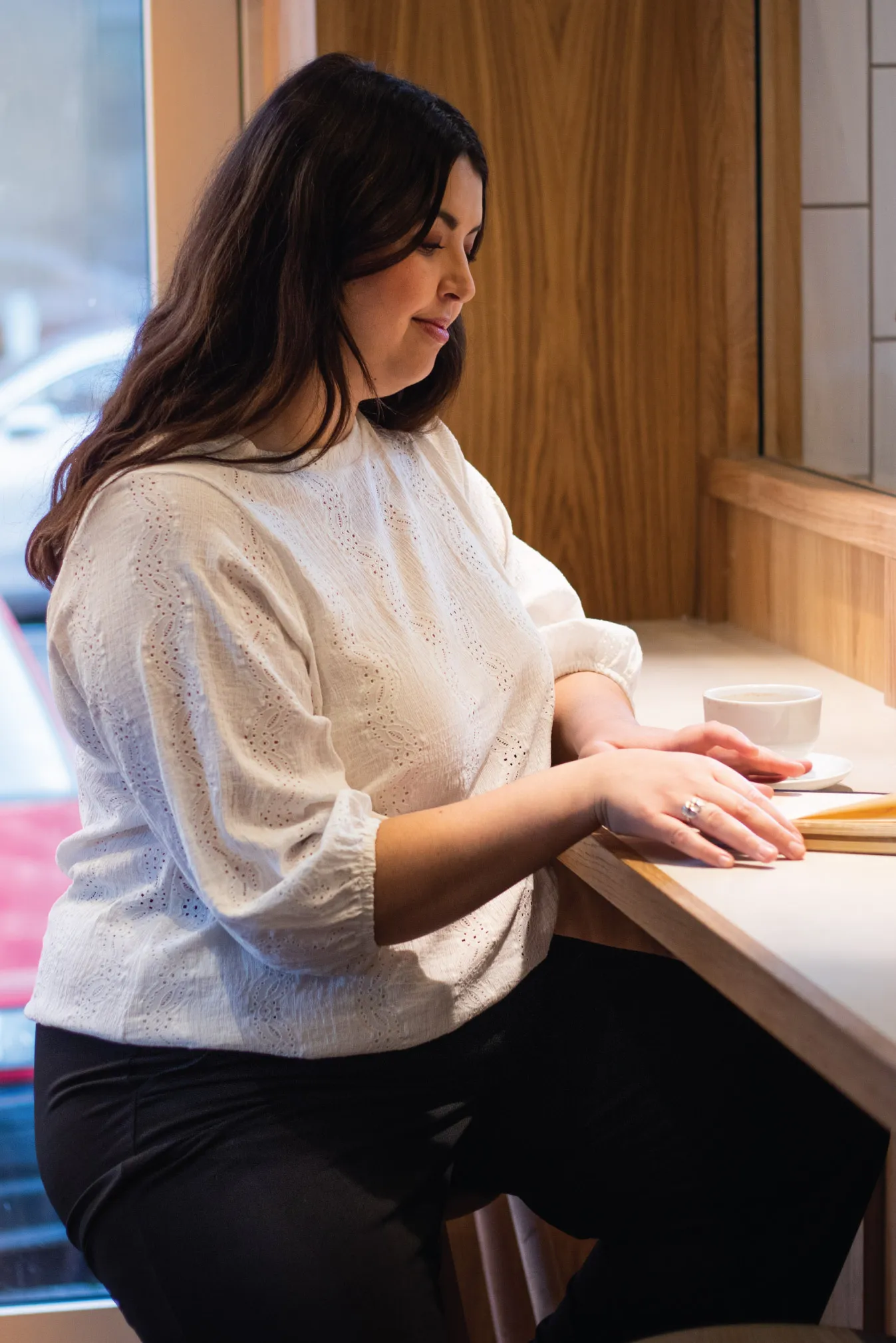 Hast du deine Must-Have-Teile für die diesjährige Frühjahrsgarderobe? Beginne mit einer klassischen schwarzen fließenden Hose und du hast Millionen Möglichkeiten, ein Outfit zusammenzustellen – perfekt mit diesem einfachen weißen Hemd. Du wirst die eleganten Ärmel und das Material lieben.